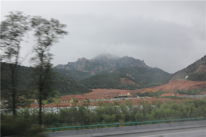 路邊的山連綿不斷