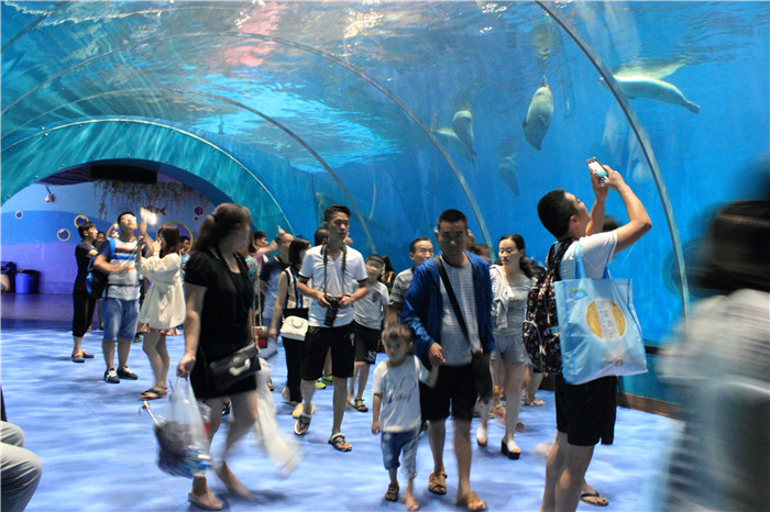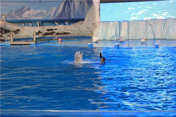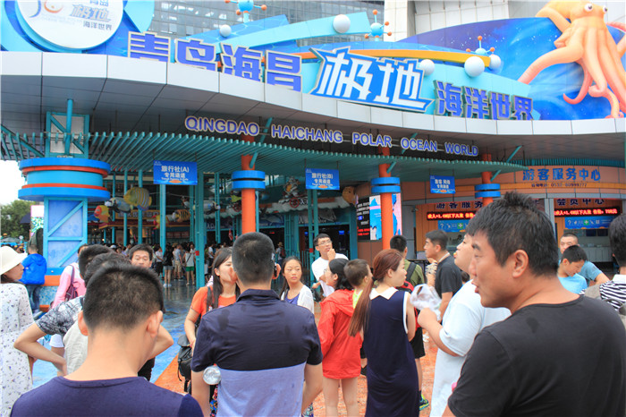 第二天,清晨,伴著陣雨,我們?nèi)コ栽绮?,青島的團(tuán)餐確實(shí)不敢恭維,不過(guò)物價(jià)在這里。吃過(guò)早飯,8點(diǎn)鐘我們到了青島極地海洋世界,青島極地海洋世界是 “海昌集團(tuán)” 在青島投資興建的一個(gè)包含海洋動(dòng)物展示,極地動(dòng) 物展示,海洋極地動(dòng)物 表演以 及海洋科技館,漁人碼頭 等為主題的綜合性 海洋主題公園。整個(gè)項(xiàng)目占地14萬(wàn)平方米,包含:海洋極地館、海洋科技館、海洋娛樂(lè)大道、漁人碼頭等項(xiàng)目。我們跟著導(dǎo)游集體入場(chǎng),小孩子還是比較興奮的,浪漫的白鯨、兇悍的北極熊、溫順的企鵝、靈巧的海獺、龐大的北海獅、北極狼、北極狐、五彩斑斕的海洋魚(yú)類、神秘的愛(ài)斯基摩人、純木制的極地雪橇、巧奪天工的北極雪屋,從不同角度展現(xiàn)了兩極地區(qū)的風(fēng)土人情和自然風(fēng)貌,讓大家體驗(yàn)冰雪極地生活的美妙感覺(jué)。極地海洋館單向觀賞不可逆行,最后來(lái)到了海洋動(dòng)物表演場(chǎng),觀賞到白鯨、海豚、海獅等海洋動(dòng)物明星傾力奉獻(xiàn)的表演,感受人與自然的融合,人與動(dòng)物的和諧。