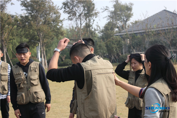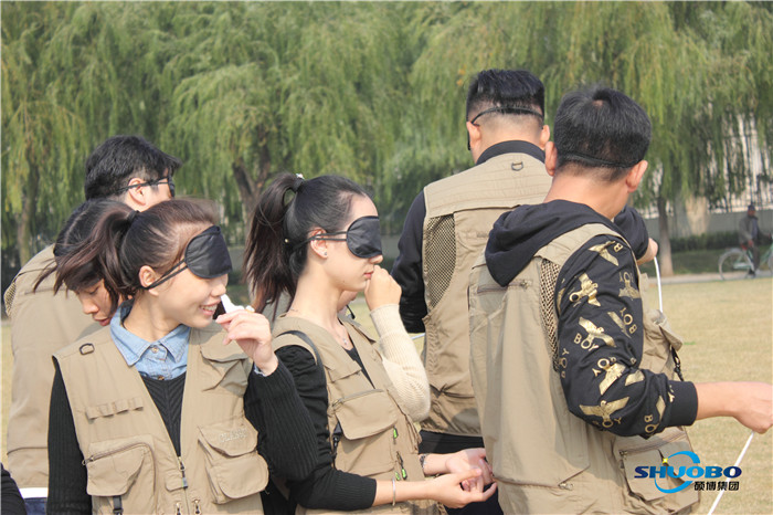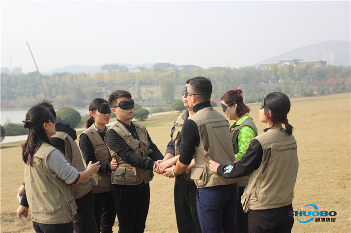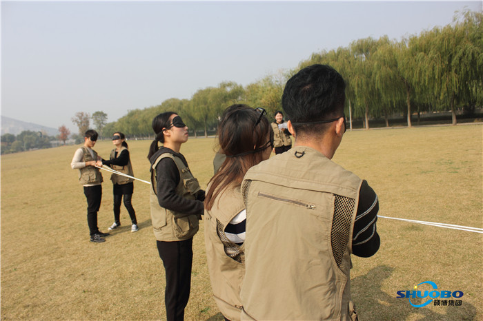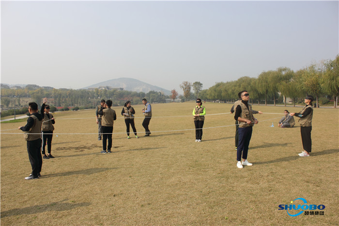 首先是“盲人方陣”??简?yàn)如何在信息不充分的條件下尋找出路,大家耗用時(shí)間最長、最混亂、所有人最焦慮的時(shí)候是在領(lǐng)導(dǎo)人選出、方案確定之前,當(dāng)領(lǐng)導(dǎo)人產(chǎn)生、有序的組織開始運(yùn)轉(zhuǎn)的時(shí)候,大家雖然未有勝算,但心底已坦然了許多。而行動(dòng)方案得到大家的認(rèn)同并推進(jìn),使員工們在同心協(xié)力中初嘗著勝利的喜悅。來看一下我們碩博的“盲人方陣”,一開始要求規(guī)則比較低,大家連隊(duì)形都排好了然后就拿好繩子,才蒙上眼睛,基本上半分鐘都可以完成的大家覺得太簡單,于是修改了一下規(guī)則,先蒙上眼睛排成一隊(duì),再給繩子,開始計(jì)時(shí)。然后混亂的時(shí)刻就發(fā)生了,有些隊(duì)員蒙上眼睛,就忘了之前的隊(duì)長說的戰(zhàn)略,然后蒙上眼睛的隊(duì)長繞繩子就發(fā)生了混亂的一幕。后邊還有出界的,提前開始等犯規(guī)情況,大家都不作數(shù)。果然蒙上眼睛,就是不習(xí)慣。接著只好再來一組加時(shí)賽,結(jié)果藍(lán)隊(duì)和粉隊(duì)都因?yàn)樾螤畈粔蛘叫味⒘械诙?/span>