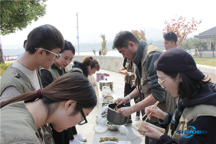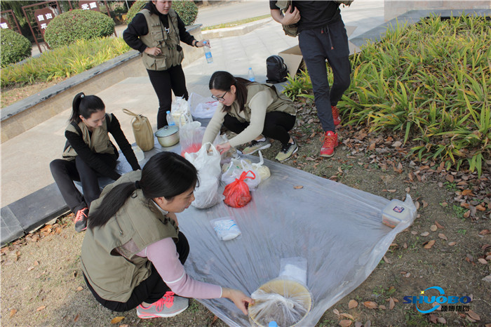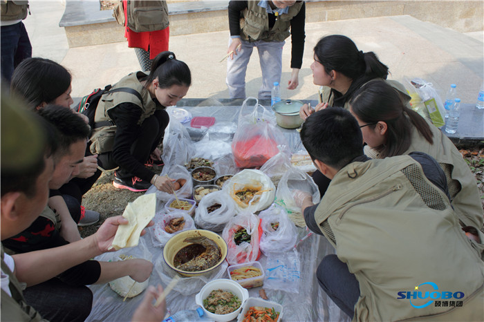 不知不覺就到了午飯時(shí)間,沿襲歷史,每隊(duì)12人240元經(jīng)費(fèi),隊(duì)長安排自理,由于時(shí)間充分,加上上一次的經(jīng)驗(yàn),大家準(zhǔn)備的還是很充裕的,沒有上一次拓展時(shí)某隊(duì)只有煎餅和醬這種局面。