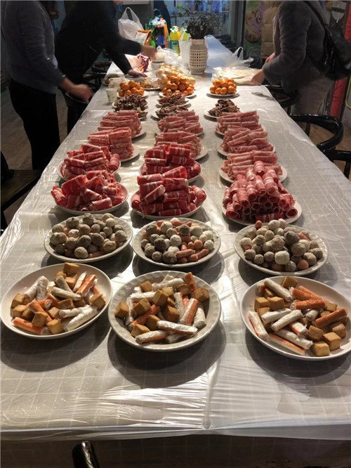 晚餐的形式主要是以火鍋為主,然后各部門現(xiàn)場做兩個菜,進(jìn)行廚藝比拼。所以女同事們紛紛挽起衣袖,洗刷餐具和蔬菜,并把肉、火鍋丸子、蔬菜、水果擺盤裝好,把大骨湯煮上。然后進(jìn)行廚藝比拼的同事也準(zhǔn)備了自己的食材。花樣還不少呢,有油燜大蝦、金湯肥牛、彩椒炒雞腿肉、清蒸桂魚、青椒雞蛋等,對了,還有烤紅薯。最后,評論哪道菜最好吃的時候,發(fā)生了很大的分歧,畢竟食材不一樣,菜也不一樣,但是每個人的愛好不同,有的喜歡吃雞肉,有的喜歡吃魚,無法分出勝負(fù),但是光光的盤子告訴我們,都好吃!