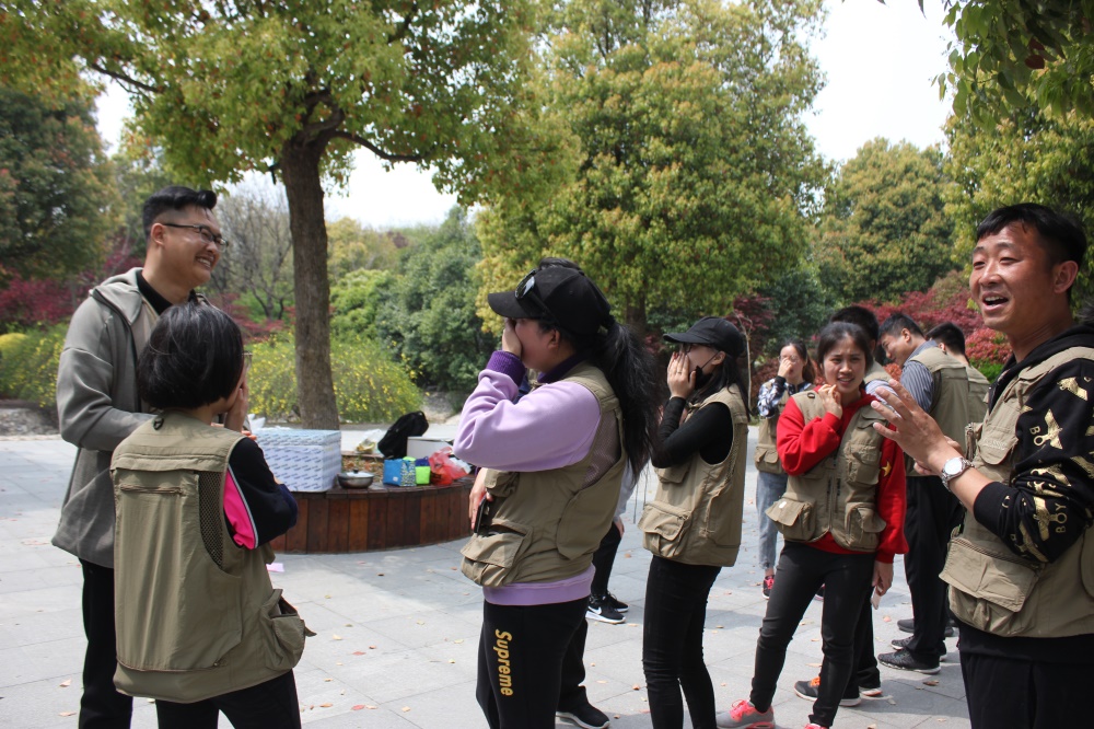 既然是拓展,那么先在操場跑一圈熱身一下吧,好久沒跑步了,跑幾步還是有些氣喘吁吁的,有的同事直接岔氣,看來還真是缺乏運動。熱身完畢,我們準(zhǔn)時出發(fā),步行至百花廣場,當(dāng)然首要任務(wù)是安全,路上負(fù)責(zé)交通安全的小組,一直守護(hù)在各個路口保持隊伍順利出行。差不多步行一個小時到達(dá)百花廣場,然后大家稍事休息,排了合影,開始登山。
