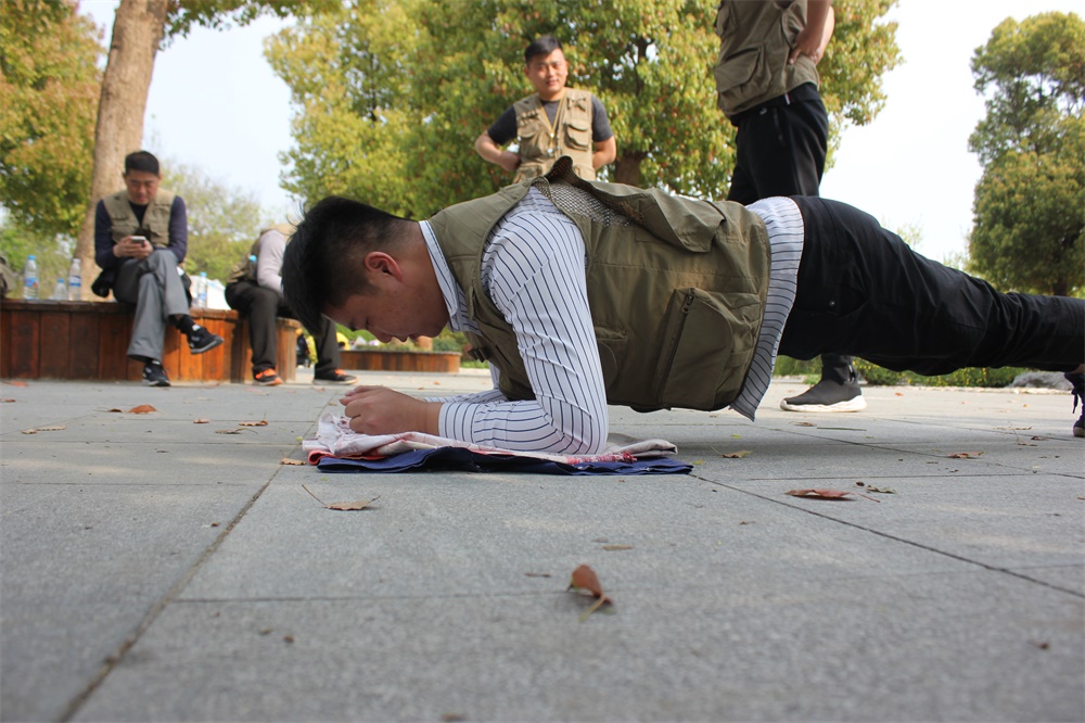 平板支撐接力,聽這名字就好像很難的樣子,每組七個人,三女四男,平板支撐時間合計最長的隊伍取得勝利。這個動作是看身材吧,胖的人表示太難了,瘦的人感覺很容易,每人多堅持一二十秒,就可以超過其他組很厲害的人,當(dāng)然最先開始隊伍總是吃虧的。