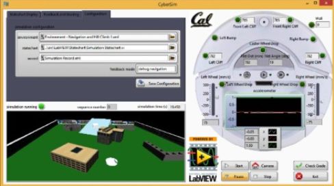 研究人員使用LabVIEW軟件開(kāi)發(fā)了兩個(gè)組件:一個(gè)是部署在虛擬或真實(shí)硬件上的模塊化控制程序,學(xué)生們可以使用C或LabVIEW狀態(tài)圖模塊開(kāi)發(fā)與平臺(tái)獨(dú)立的代碼;二是開(kāi)發(fā)了獨(dú)立運(yùn)行的簡(jiǎn)易應(yīng)用程序,提供直觀易懂的GUI來(lái)進(jìn)行仿真、測(cè)試、提供自動(dòng)反饋,并通過(guò)自動(dòng)評(píng)分機(jī)來(lái)進(jìn)行評(píng)分。