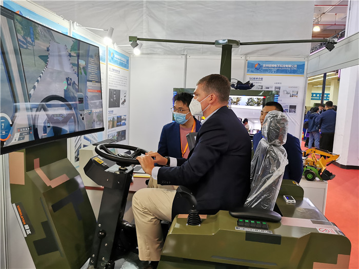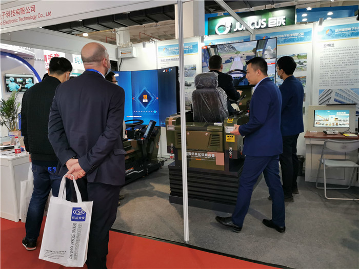 此次展會,我司的參展設(shè)備,是我司根據(jù)中國人民解放軍陸軍工程大學(xué)要求研制的工程機(jī)械裝備仿真模擬器,輪式裝載機(jī)仿真模擬器、高速輪式挖掘機(jī)仿真模擬器及飛機(jī)充氧車仿真模擬器,此次展出的設(shè)備,主要采用模組機(jī)的概念來設(shè)計,通過簡單的硬件模塊更換,自動識別軟件系統(tǒng),從而切換不同設(shè)備的模擬器,其中高挖模組機(jī)配備六自由度平臺,讓模擬器操作更加真實,更符合真機(jī)體感。