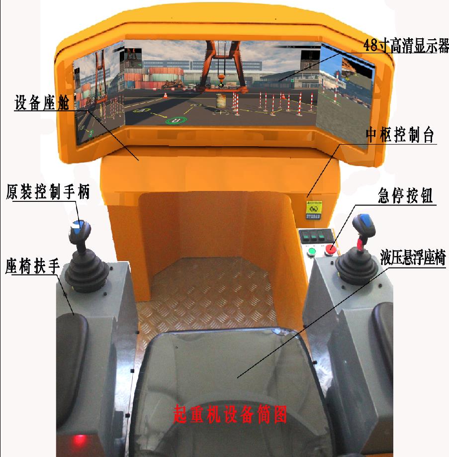 該模擬教學設備硬件由懸浮式座椅、駕駛座艙、底座平臺、PC系統(tǒng),視景顯示器,五級變速原裝塔吊控制主令,急停按鈕,IC卡讀寫裝置、360視角調(diào)整搖桿、數(shù)據(jù)采集卡、控制臺及各種功能控制按鈕組件等組成。設備采用與真實塔吊相同的操作部件,逼真的操作手感,使得其操作功能、操作感覺與真機完全吻合;