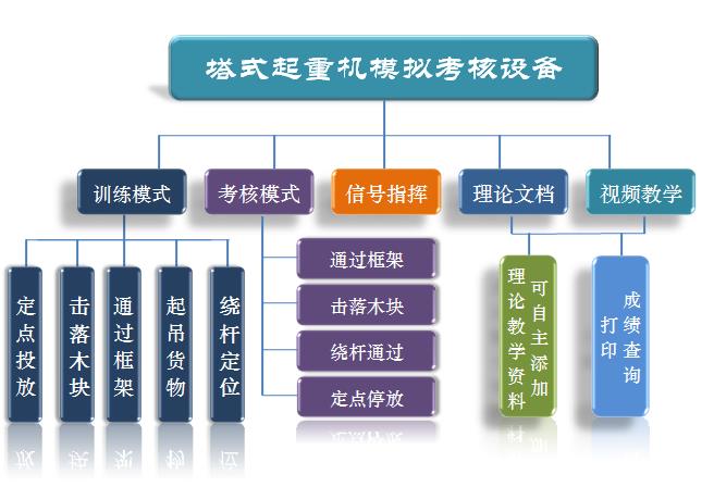 該模擬教學設備配備新款塔吊模擬軟件V8.5專業(yè)版,包含理論學習、操作訓練、實訓考核、理論考核等仿真課題。