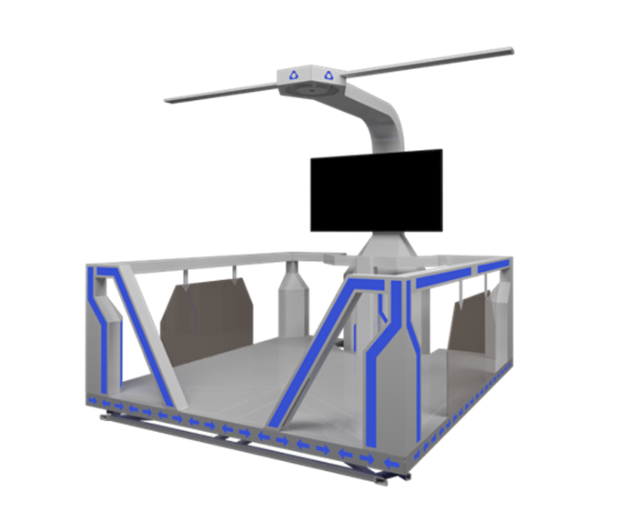 占地面積不到2平方,專用低摩擦鞋,配置萬向追蹤裝置,真實(shí)實(shí)現(xiàn)虛擬現(xiàn)實(shí)交互。通過VR跑步機(jī)移動定位技術(shù)運(yùn)用,讓占真實(shí)腳步移動與虛擬移動相結(jié)合。