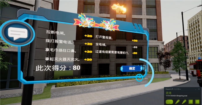 基于虛擬現(xiàn)實(shí)技術(shù)(VR)開發(fā)的vr體驗(yàn)系統(tǒng),體驗(yàn)者通過VR頭顯設(shè)備,以不同視角,分別體驗(yàn)不同火災(zāi)場景,進(jìn)一步增加消防意識。