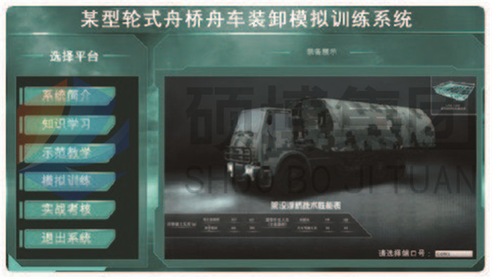 輪式舟橋舟車(chē)裝卸模擬訓(xùn)練系統(tǒng)是以定型的某型橋梁裝備為原型,依據(jù)《中國(guó)人民解放軍工程兵裝備訓(xùn)練大綱》要求研制開(kāi)發(fā)。采用軟、硬件相結(jié)合的方式,基本還原輪式舟橋舟車(chē)在裝卸操作過(guò)程中的操作要點(diǎn)和步驟,此裝備操作需多人協(xié)同作業(yè)。模擬操作盒操控裝置與原型輪式舟橋舟車(chē)實(shí)裝操縱裝置位置、功能、手感、動(dòng)感基本一致,采用合理的通信方式,配合模擬訓(xùn)練器材,通過(guò)計(jì)算機(jī)模擬仿真的方法,模擬搭建真實(shí)的輪式舟橋舟車(chē)操作環(huán)境,構(gòu)建接近實(shí)戰(zhàn)的虛擬作訓(xùn)空間,支持裝備多種方式的架設(shè)和撤收訓(xùn)練,可以降低訓(xùn)練成本,提高訓(xùn)練的針對(duì)性、實(shí)戰(zhàn)化水平。同時(shí)模擬訓(xùn)練器軟件系統(tǒng)和半實(shí)物硬件均支持二次開(kāi)發(fā),可滿(mǎn)足各單位的定制化需求。