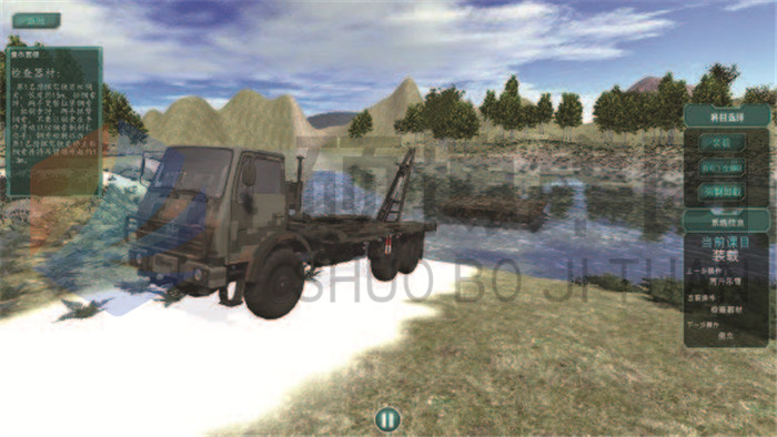 輪式舟橋舟車(chē)裝卸模擬訓(xùn)練系統(tǒng)主要針對(duì)應(yīng)用作業(yè)、協(xié)同作業(yè)、理論教學(xué)等內(nèi)容進(jìn)行學(xué)習(xí)和訓(xùn)練,使操作人員在練習(xí)操作步驟和方法的同時(shí),掌握操作中的技術(shù)要點(diǎn)和安全注意事項(xiàng),通過(guò)虛擬現(xiàn)實(shí)技術(shù)使受訓(xùn)人員能夠較深刻的體會(huì)安全事故的后果,更好的避免安全事故的發(fā)生,同時(shí)可以使受訓(xùn)人員具備常規(guī)的檢修和故障處理能力,提高裝備培訓(xùn)的可靠性,有利于培養(yǎng)部隊(duì)所需的多樣化人才,達(dá)到部分代替實(shí)裝的訓(xùn)練效果。